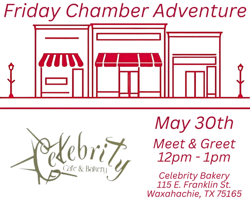 The Red Oak Area Chamber of Commerce Friday Chamber Adventure takes us to Celebrity Bakery. Come, have lunch, and network on May 30th from 12:00 PM - 1:00 PM!